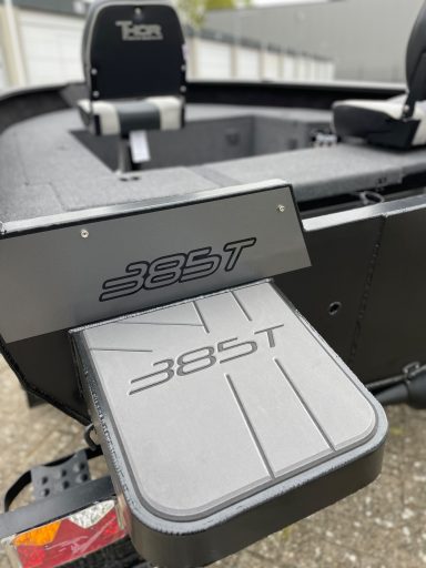 - Zusätzliche, abnehmbare Castingdeck-Erweiterungsplattform, pulverbeschichtet in Bootfarbe und bedeckt mit schlaufenlosem Teppichmaterial